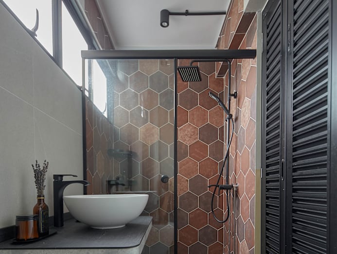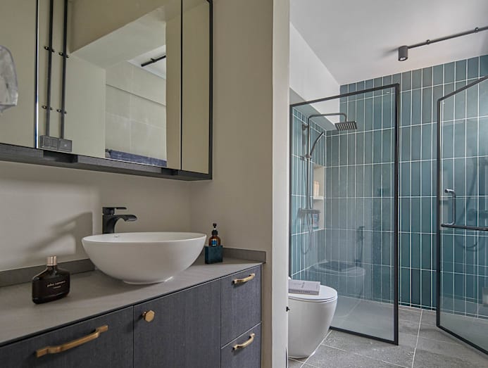 “They gave me the freedom to plan for them, and the final outcome was almost the same as what I’d proposed, especially the kitchen and master bathroom,” says Eric. “I’m really thankful that they were very receptive to my ideas and suggestions to use bold coloured materials, like for the kitchen and toilet tiles, as well as kitchen cabinets.”