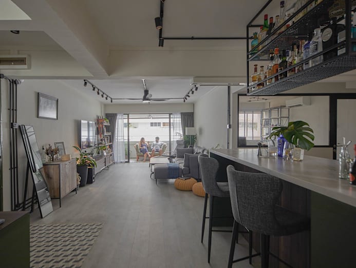 After A $70k Reno, This 5-Room Flat Now Has A Bold, Eclectic Bar Area In The Heart Of The Home