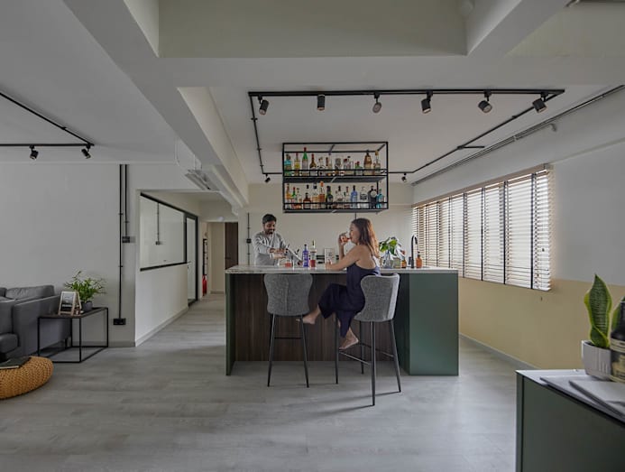 It took three months and $70,000 to totally transform this five-room Serangoon flat into the eclectic, breezy and bold abode that it is now. Home to a couple with a love for cocktails, the heart of the 1,300 sqft apartment is an open-concept bar and dining area that wouldn’t look out of place in a hip speakeasy.