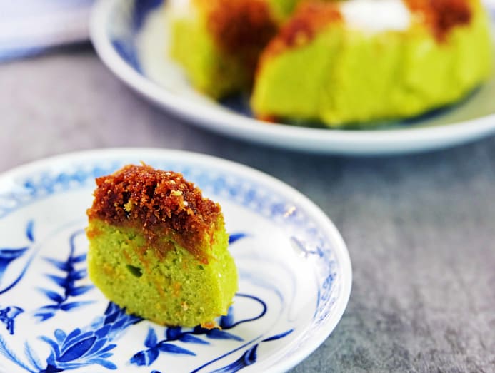 A silicon mould (we used a 23cm one from Shopee) will also make your life much easier when it comes to unmoulding this cake. Because it is steamed and contains no fat like butter or oil, a metal tin that needs greasing will mess with the texture of your cake. Silicon bundt moulds are easily and cheaply available online.