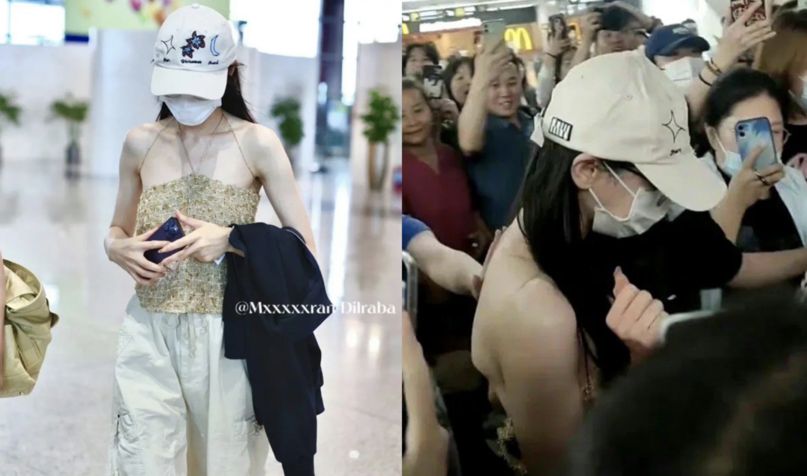 Last week, Dilireba showed up at the airport wearing a back-baring gold halter-neck top.