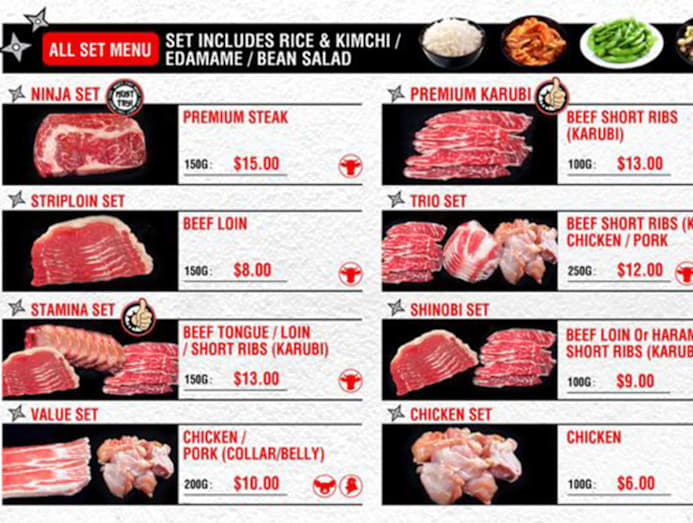 Prices start from $6 for a 100g Chicken Set, which comes with a bowl of rice and your choice of a kimchi, edamame or Japanese okra bean salad side dish. Beef options start at $8 for the Striploin Set with 150g of beef loin, all the way to $22 for 120g of Hokkaido Wagyu Beef.