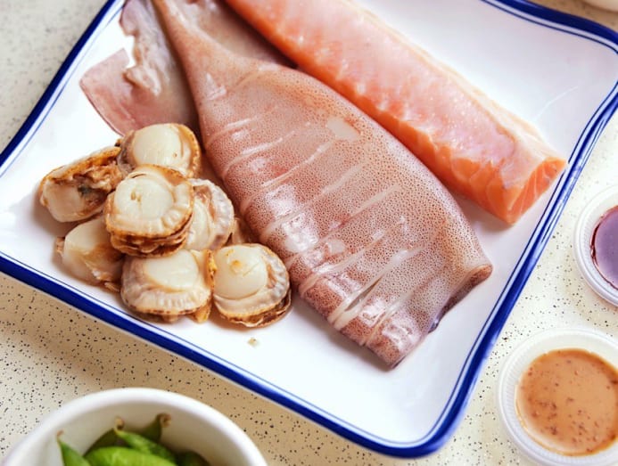 You can also order a la carte seafood like Salmon Belly ($5), Greenland Halibut ($8), Ika (Japanese squid, $6) and Hotate (Japanese scallop, $5 for five). There are a la carte meat options if you need a top-up for your meal, like Chicken Thigh ($4 for 100g), Beef Tongue ($5 for 50g) and Premium Karubi ($6 for 50g), a thinly-sliced, marbled beef short rib cut that’s popular for yakiniku.
