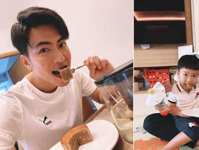 Yummy factor: Xu Bin couldn't be happier to spend Mid-Autumn Festival with his three-year-old son Ethan. And not only did they share slices of traditional baked mooncakes, the proud papa also showed off Ethan’s artwork from school — a homemade lantern made from recycled materials like a used water bottle.