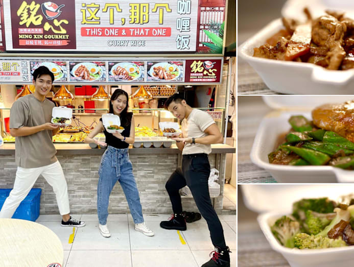 Yummy factor: The humble cai fan has been under the spotlight of late, thanks to talented music duo Annette Lee and Benjamin Kheng’s musical tribute to the Singaporean favourite. Siming met up with Ann and Ben at This One & That One Curry Rice stall to tapow cai png and find out more about their hit Mandarin pop song ‘The Caifan Song'. In case you're wondering, Ben had mala pork, steamed egg and potatoes, Ann ordered curry chicken (one of her go-to choices), fried lady's fingers, duck wings, while Siming opted for broccoli, eggplant and steamed egg.