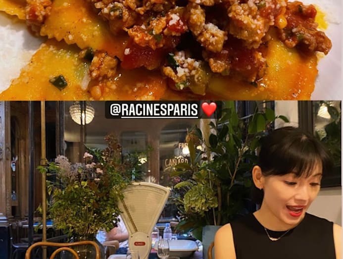Yummy factor: Sharon’s meal at popular French restaurant saw her indulging in comfort food, Parisian-style — a delicious red, pasta bolognese with ravioli parcels, as well as a generously-sized cote de veau (veal chop) with plenty of greens on the side to balance the meal. Yum.