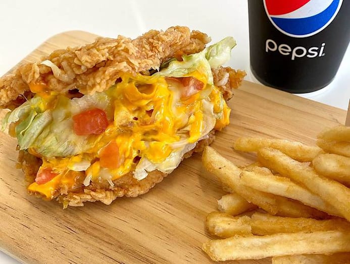 KFC’s PR rep tells us that the chicken shell isn’t cooked using the Original Recipe but is instead “marinated chicken fried to crispy perfection”. It looks very thick, but we were able to bite into it comfortably, and all the ingredients within were snugly held in place without falling out. The chook tasted pretty similar to KFC’s Popcorn Chicken — slightly peppery and briny with a hint of spice, and with a thicker, crunchier batter. The breast meat was a touch dry, but still boasted a pretty crisp skin despite sitting out for a while. Meanwhile, the lettuce added a nice refreshing crunch, and the tomatoes a welcome tartness. But as cheese fiends, we never thought we’d say this — but there was a tad too much cheese. There’s shredded mozzarella and cheddar on top, plus a creamy cheese sauce made with cheddar, romano, and emmanthal. It got a bit jelak after a while.