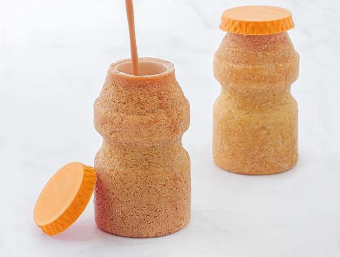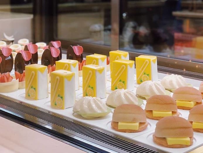 While this looks exactly like a regular lemon tea juice box (a fave with Hongkongers) with its bright yellow colour and plastic straw, it's actually a cake made with earl grey mascarpone mousse filled with bergamot curd. Super cute and retro.