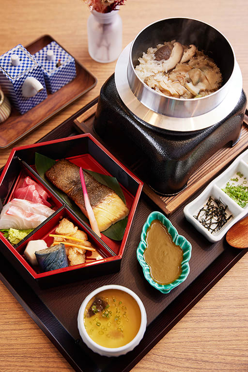 This set features tender slices of wagyu beef over the same dashi-infused rice. This combination is homelier than the seductive smokiness of the grilled unagi; the savoury beef goes well with the delicate, nutty flavour of the rice.
