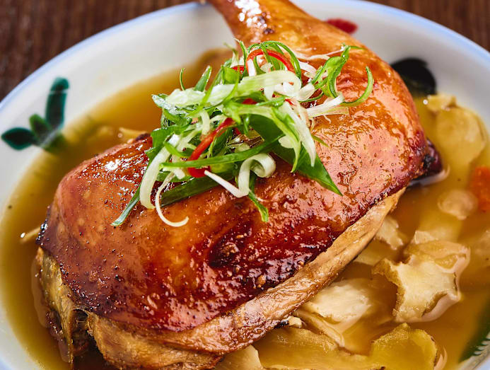 This innovative dish impressed us from the get-go: beautifully browned and crisp-skinned chicken leg sits in delicious herbal broth made from angelica root, dang shen (codonopsis root), goji berries, red dates and bay leaves (an unorthodox addition that according to Kelvin brings a harmonious, fragrant lift to the broth – we concur).