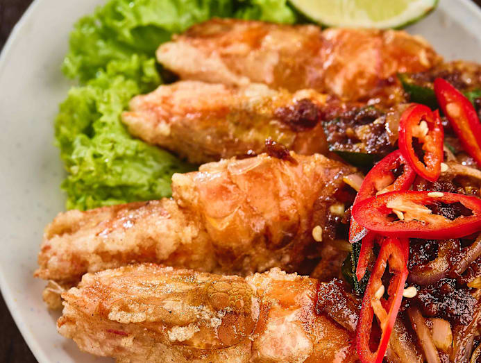 A remarkable showcase of sambal prawn, with hotel-chef finesse: four large, lightly battered sea prawns are deep-fried separately and assembled with a redolent made-from-scratch sambal belacan mixture with generous heaps of onion and okra. An almost-perfect dish, if not for the too-tough and stringy okra slices.