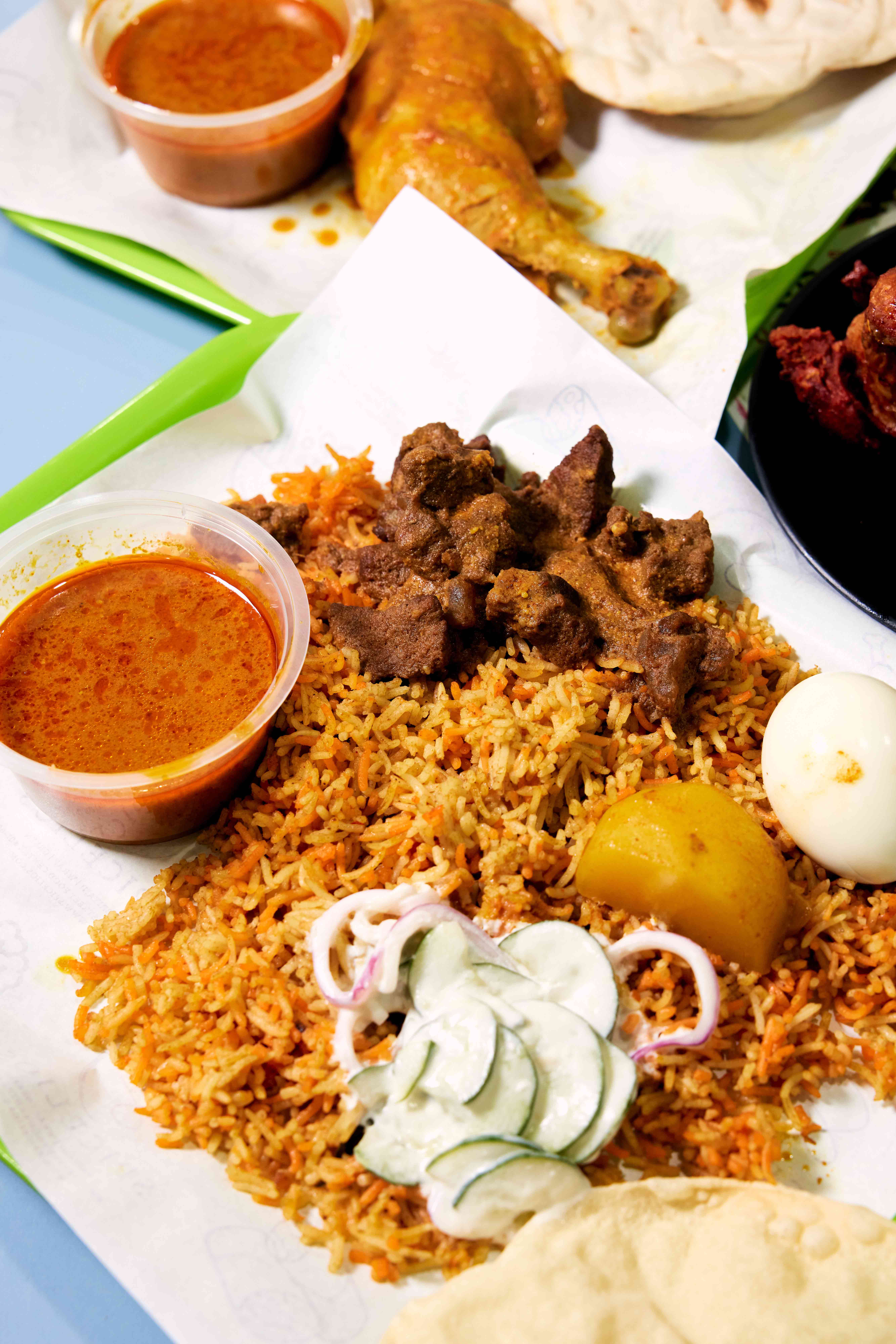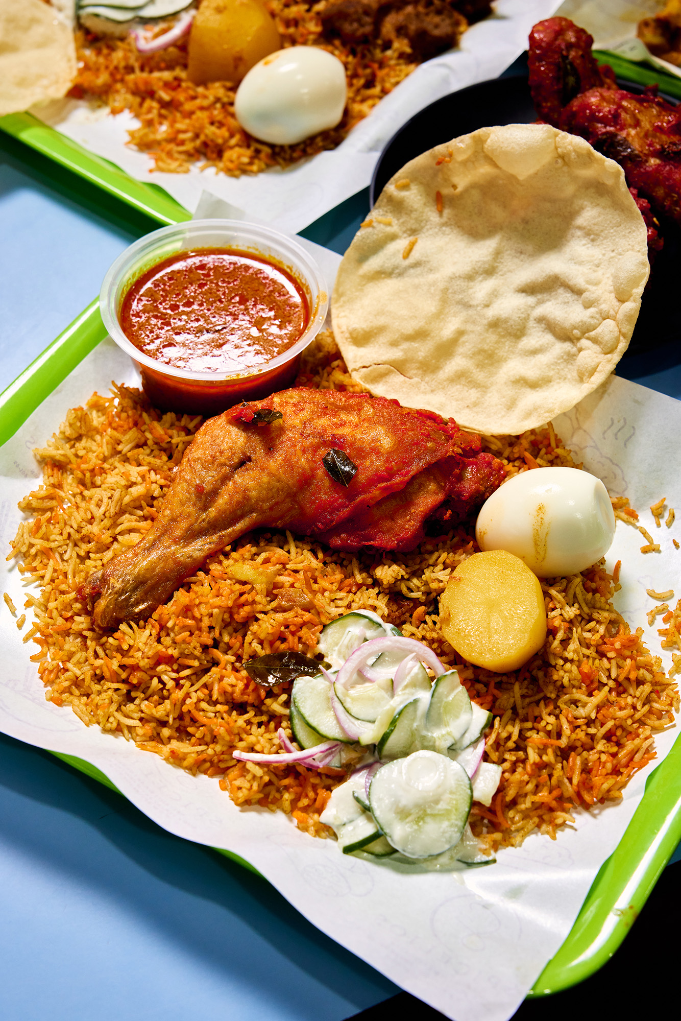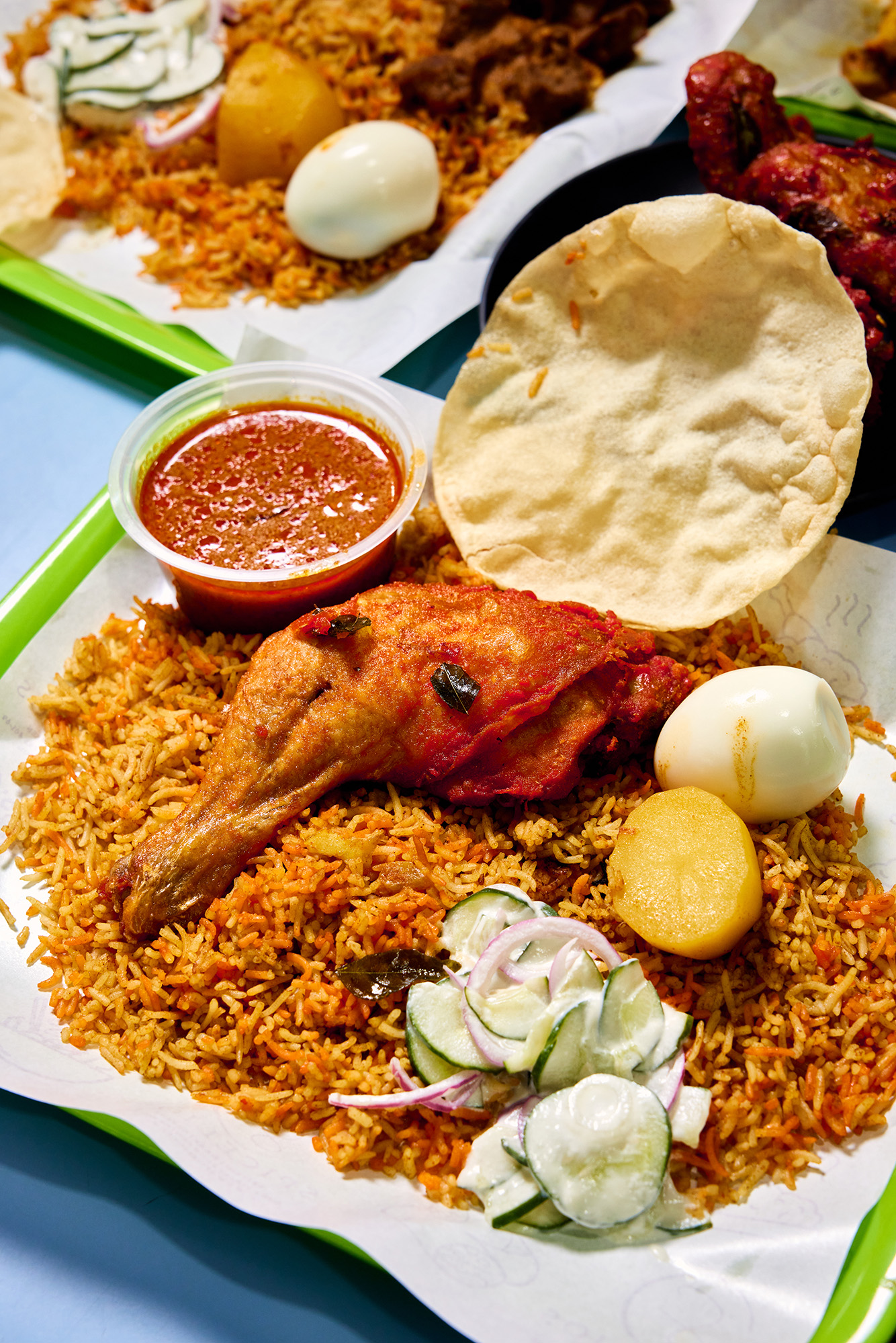 He offers traditional Chicken and Mutton Biryani; fusion wraps stuffed with your choice of veggies or Biryani rice; and affordable fried chicken wings at $1.50 a pop or $4 for three. Other menu items he’d like to add some day: mee goreng, prata and masala dosa.