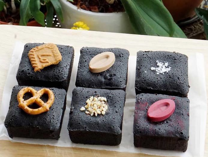 For his Kurokuro Brownies (kuro means black in Japanese), Kelvin dreamt up almost all the names himself. Plus points for creativity. The molten centre consists of an intense black cocoa brownie base itself (similar to a choc lava cake), as well as six different fillings — cookie butter, almond ganache with almond slivers, bittersweet 70% guanaja chocolate, raspberry ganache-dark chocolate, Nutella, and Ovomaltine spread. Kelvin says an Earl Grey ganache lava brownie is in the works, along with other tea-based flavors. Stay tuned.