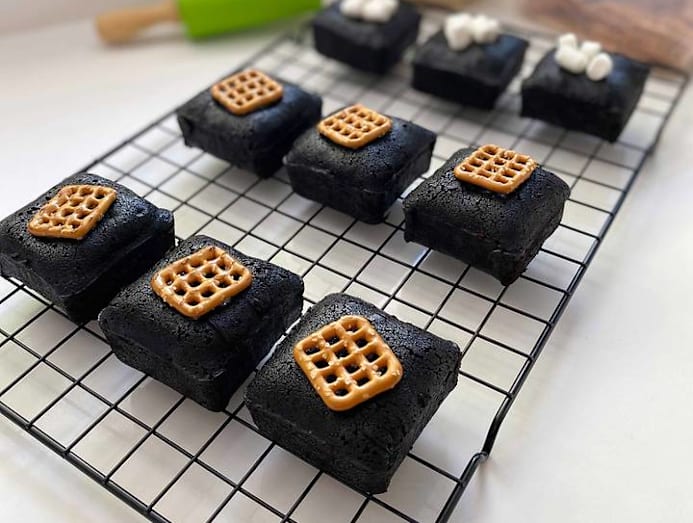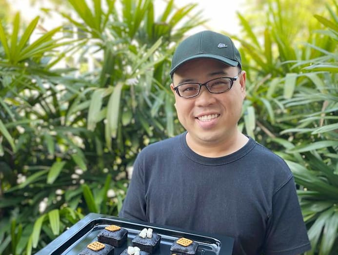 Kelvin scrolls through his phone, sharing photos of his first-attempt failures. “This was my first batch of lava Kurokuro Brownies (see above). I baked them thinking that I had used more than enough filling — but when I cut them…” he trails off with a chuckle.