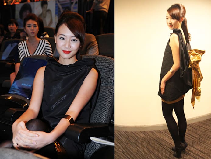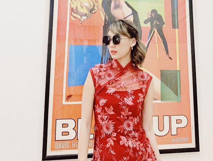 Speaking of ang pow... For Chinese New Year, Julie brought on the swag by pairing her sheer floral cheongsam with black sunglasses. Nice!
