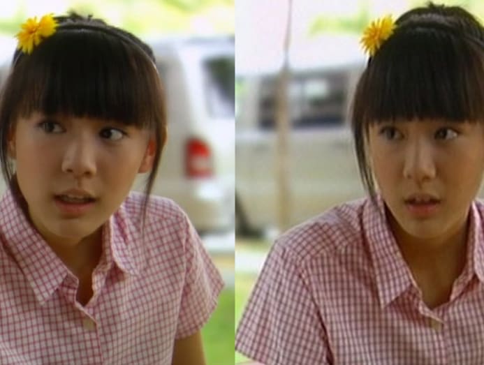 Julie looked like any other schoolgirl in telemovie The Promise, where she sported blunt bangs and hair feelers.