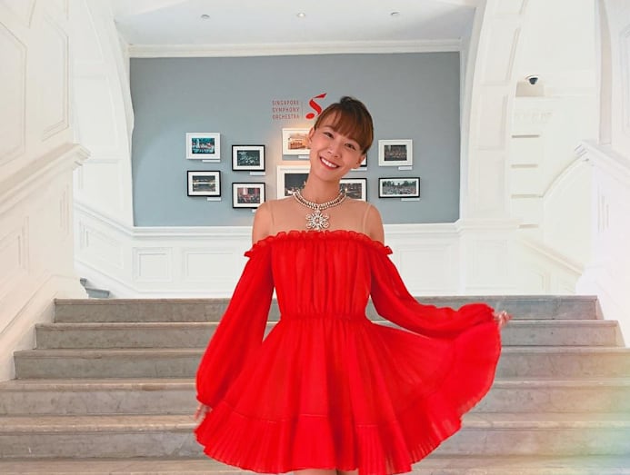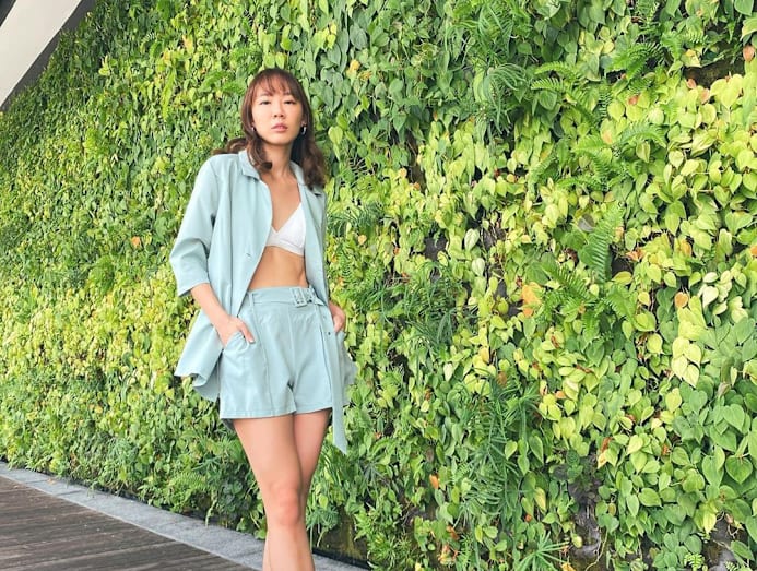 Looks like someone has been working out during the Circuit Breaker. Julie looked abs-olutely fab in this chic mint shorts suit and bralette.