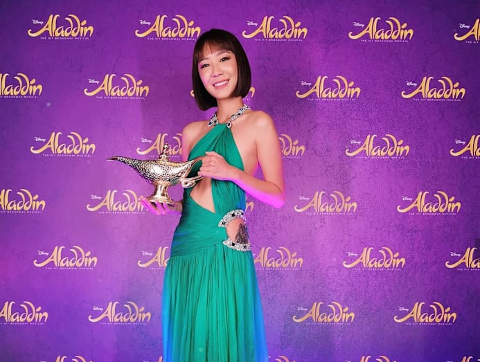 If we were the magic lamp, we would make this Moschino gown disappear. The huge cut-outs are more tacky than va va voom and the colour ages the actress.