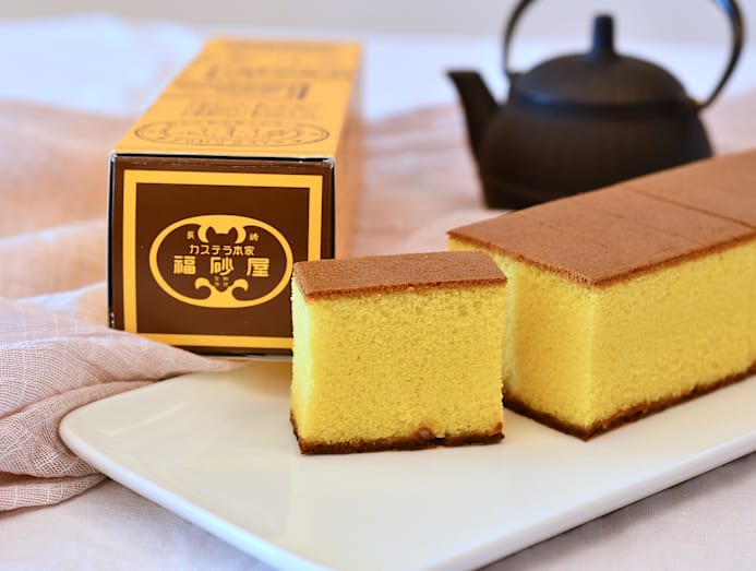 According to Fukusaya’s website, its founder “learned the secrets of making castella from a Portuguese visitor, and over the years it has evolved into a Japanese treat representing a perfect fusion of Eastern and Western cultures”. It also claims to be the originator of Nagasaki castella . The cake is handmade with “carefully selected eggs, sugar, thick rice syrup and flour”. Each neatly sliced loaf looks almost too perfect: golden, even-crumbed and capped with a well-toasted brown crust.