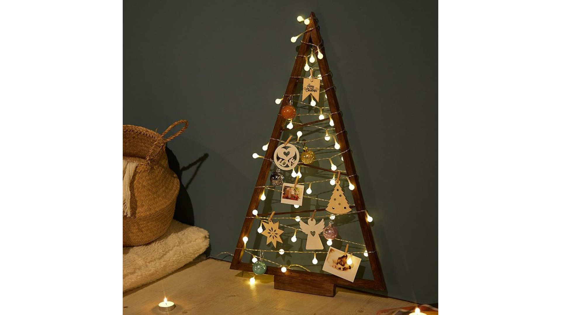 A combination of rustic chic and hippie art student work, this abstract Christmas tree is the ultimate space saver and allows you to explore your creative side as you go wild with what to decorate it with and how to make it more ‘you’. From fairy lights to polaroids to tiny baubles to paper cutouts, the sky’s the limit.