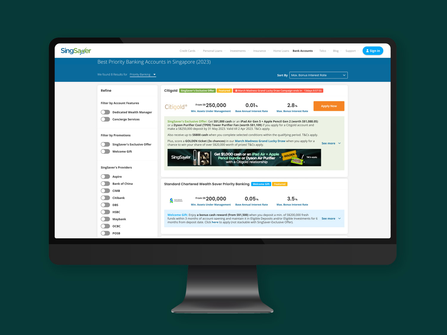 The platform lets you compare priority banking products to identify one that best fits your needs. The SingSaver blog also provides reviews of selected priority banking accounts for readers to get a fuller picture of the services on offer. In addition, SingSaver has partnered different priority banking products to give you exclusive privileges when you sign up on the website.