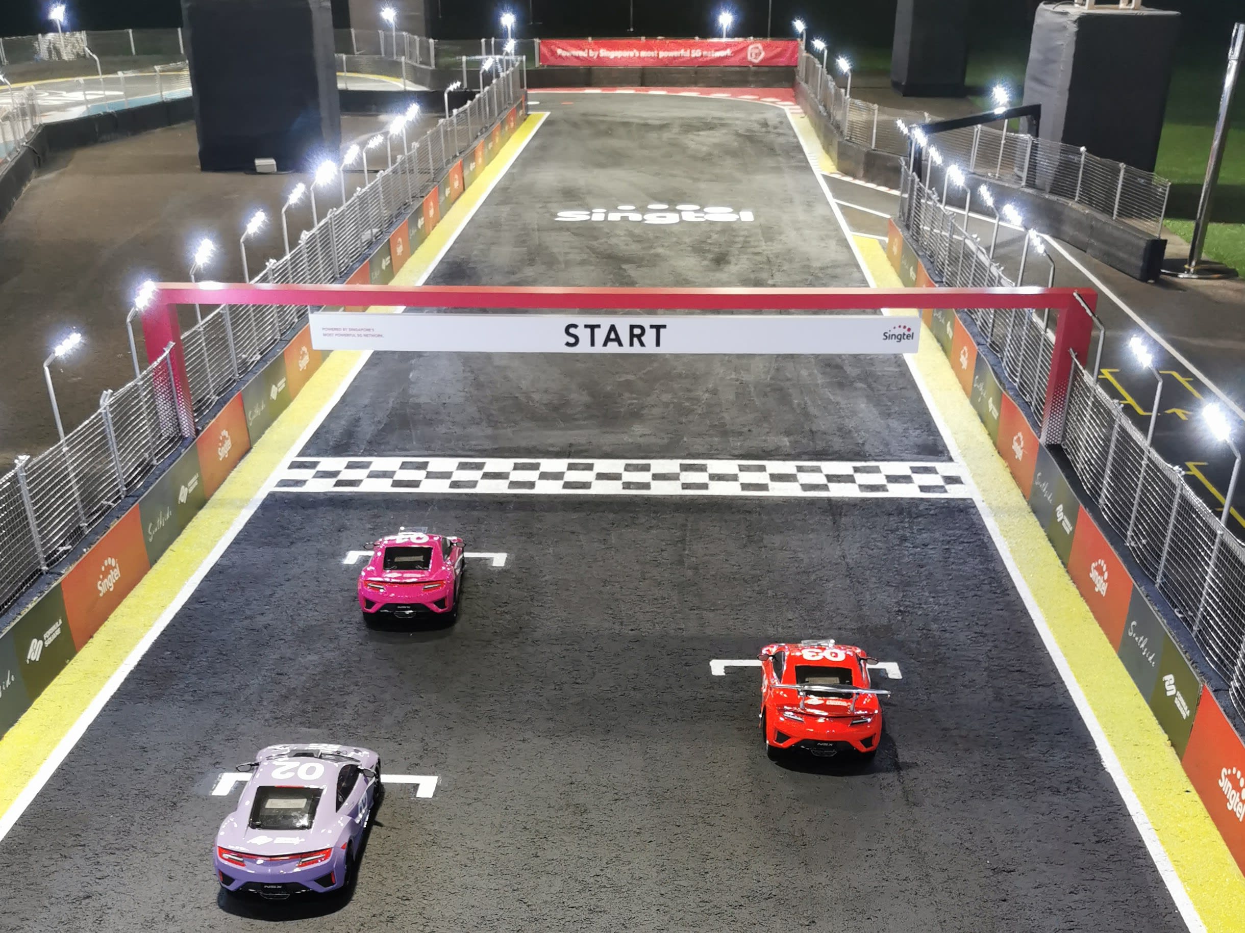 As you take control of a 1:10 scale radio-controlled car in Singapore’s first 5G-powered night e-Race, you get a real-time video feed of the racetrack – located 50m from the racing booths – from a camera attached to the cars.