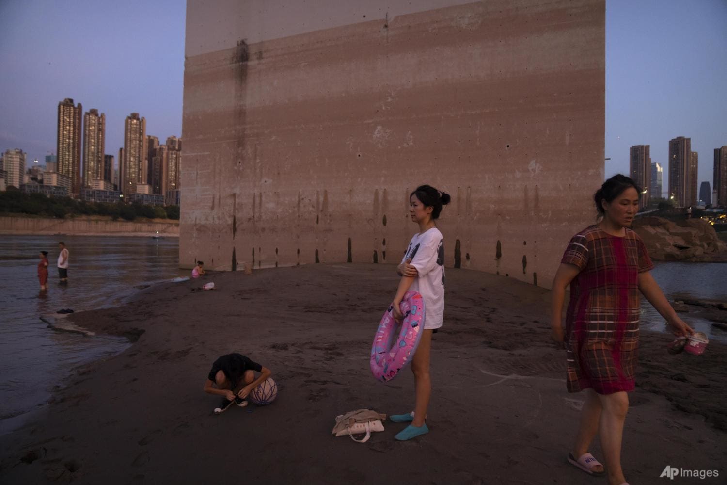 And along the Yangtze and its tributary Jialing, people have been taking the opportunity to explore newly exposed riverbeds and swim in shallow waters.