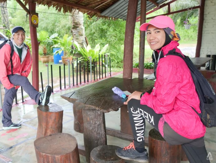 She and her comrade-in-arms Rafizah Mat Zin, 46, have another 5km to reach Bentong town, famous for its Musang King durians, and check in with the local police station to record their safe arrival, before trekking on to reach their destination for the day.