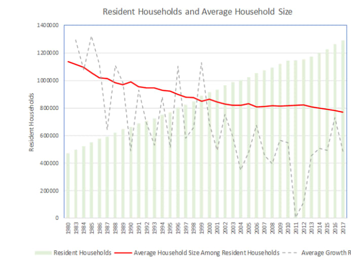 The number of resident households has increased by almost three times from 472,700 in 1981 to 1,289,900 in 2017.