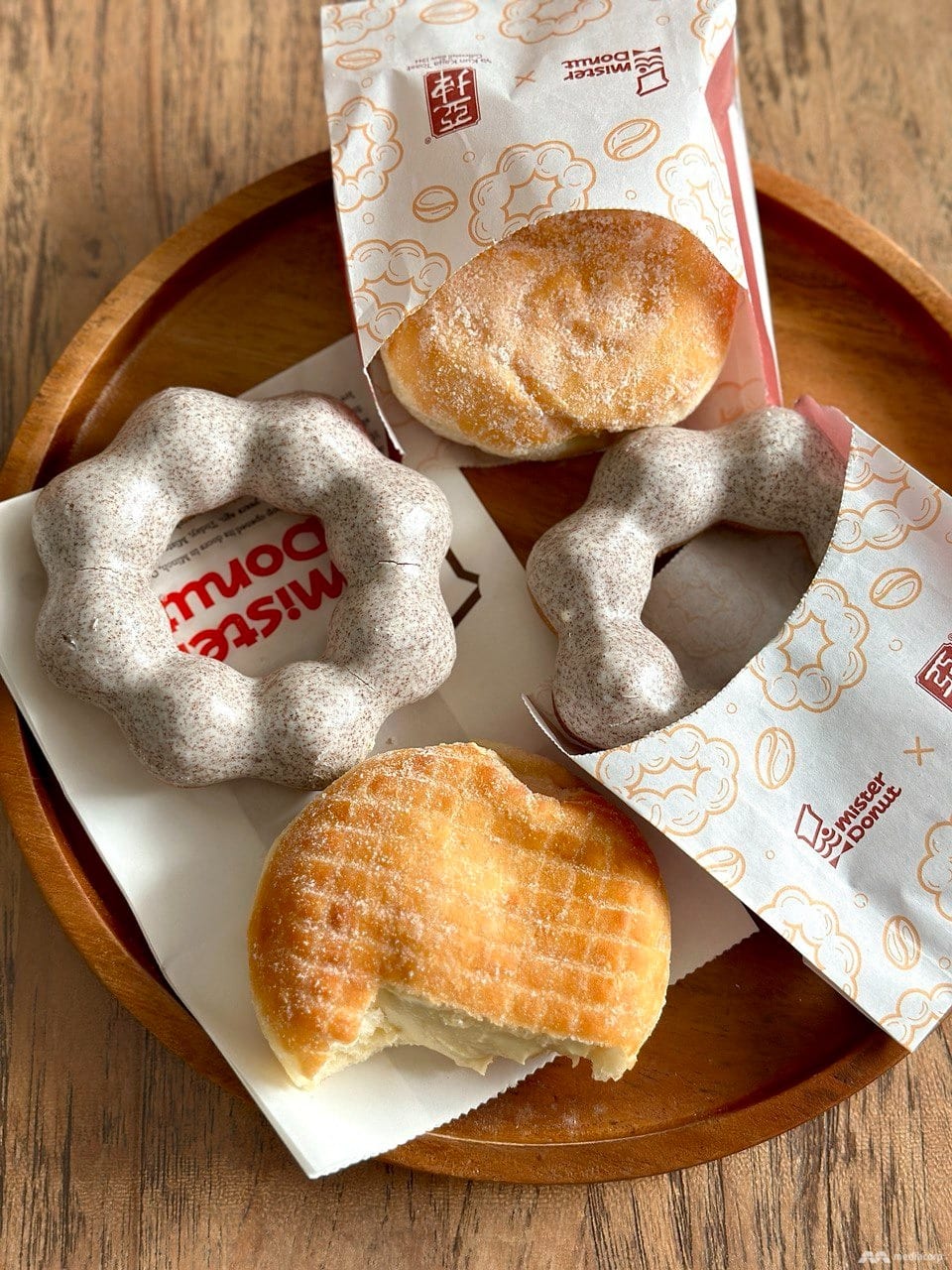 The limited-edition flavours are available only from Aug 1 to 31 at all Mister Donut outlets islandwide, and come in a cute paper pouch emblazoned with Mister Donut and Ya Kun’s logos.