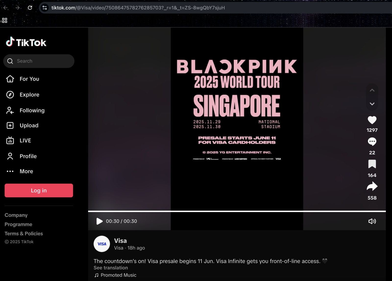 TikTok ad by Visa seemingly shows Blackpink will stage concert in Singapore in November