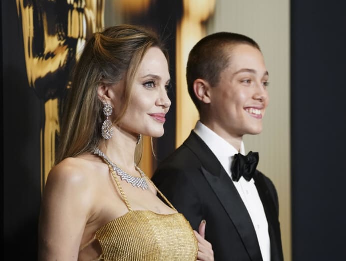 From left: Knox Leon Jolie-Pitt and Angelina Jolie arrive at the 15th Governors Awards on Sunday, Nov 17, 2024, at The Ray Dolby Ballroom in Los Angeles. (Photo by Jordan Strauss/Invision/AP)