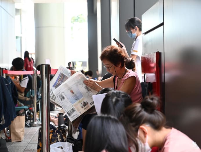 “I brought a mat, a chair, a jacket and a portable charger. I feel relieved to be here first as (the SingPost branch at) Downtown East already had three people in the queue on Wednesday afternoon.”