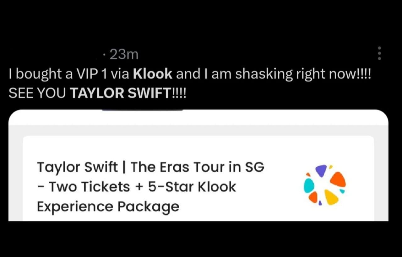 Surprisingly, fans who opted for Klook’s packages seemed to have an easier time of it. A Twitter user reportedly secured a package with VIP 1 Taylor Swift tickets and a night’s stay at a five-star hotel by 12.16pm.