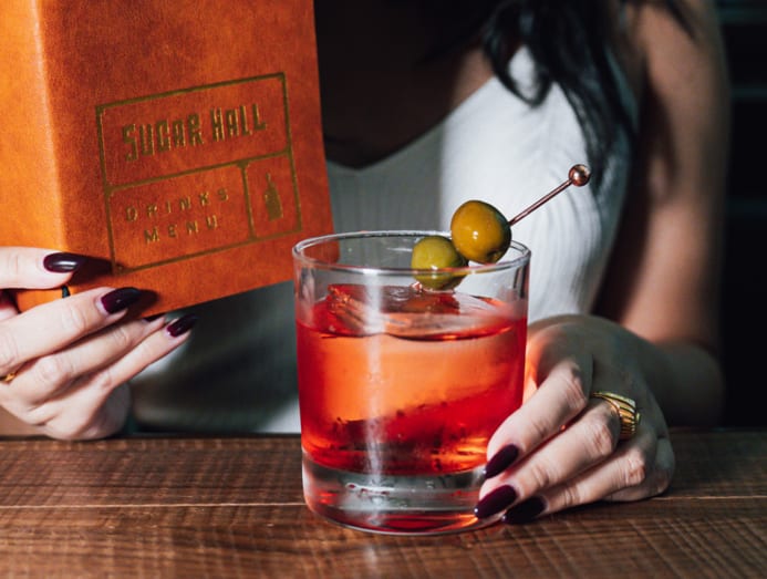 The Olive Negroni mixes gin fat-washed with buttery Sicilian Castelvetrano olives with a dash of South African agricole rum for a funky and delicious take on the traditional negroni.