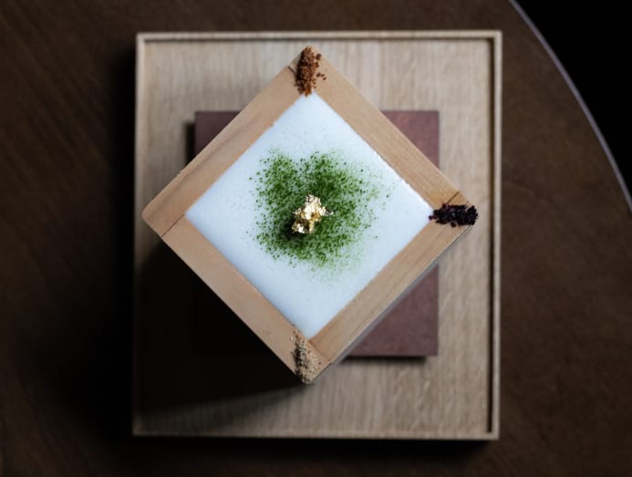 Among its unique drinks is the Four Seams No.2, a unique tipple to Singapore. The concoction consists of Grey Goose vodka that has been redistilled with genmaicha and egg white. It is served in a masu cup, a traditional hinoki wood cup used to imbibe sake on special occasions. Sip it from one corner before proceeding to the other three that are dotted with miso, dashi and cassis powder respectively and enjoy the interplay of flavours.