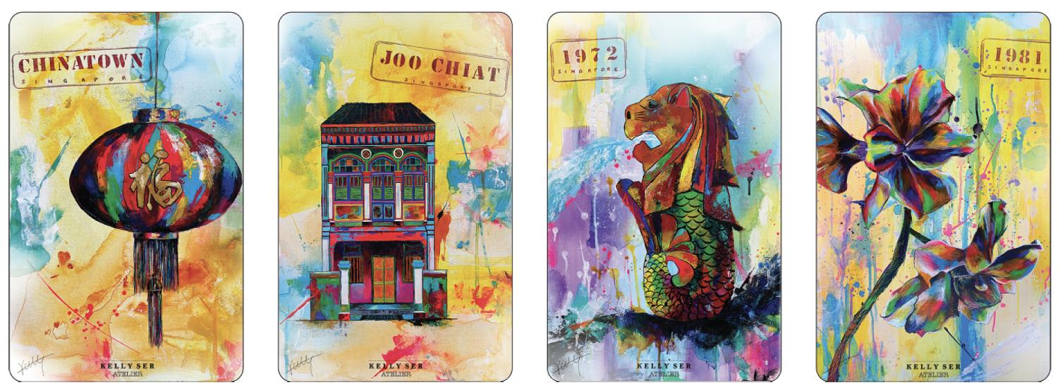 Ser’s pieces from her Not Just A Little Red Dot series will feature on one set of the cards, including representations of historically significant neighbourhoods like Chinatown and Joo Chiat, as well as the iconic Merlion.