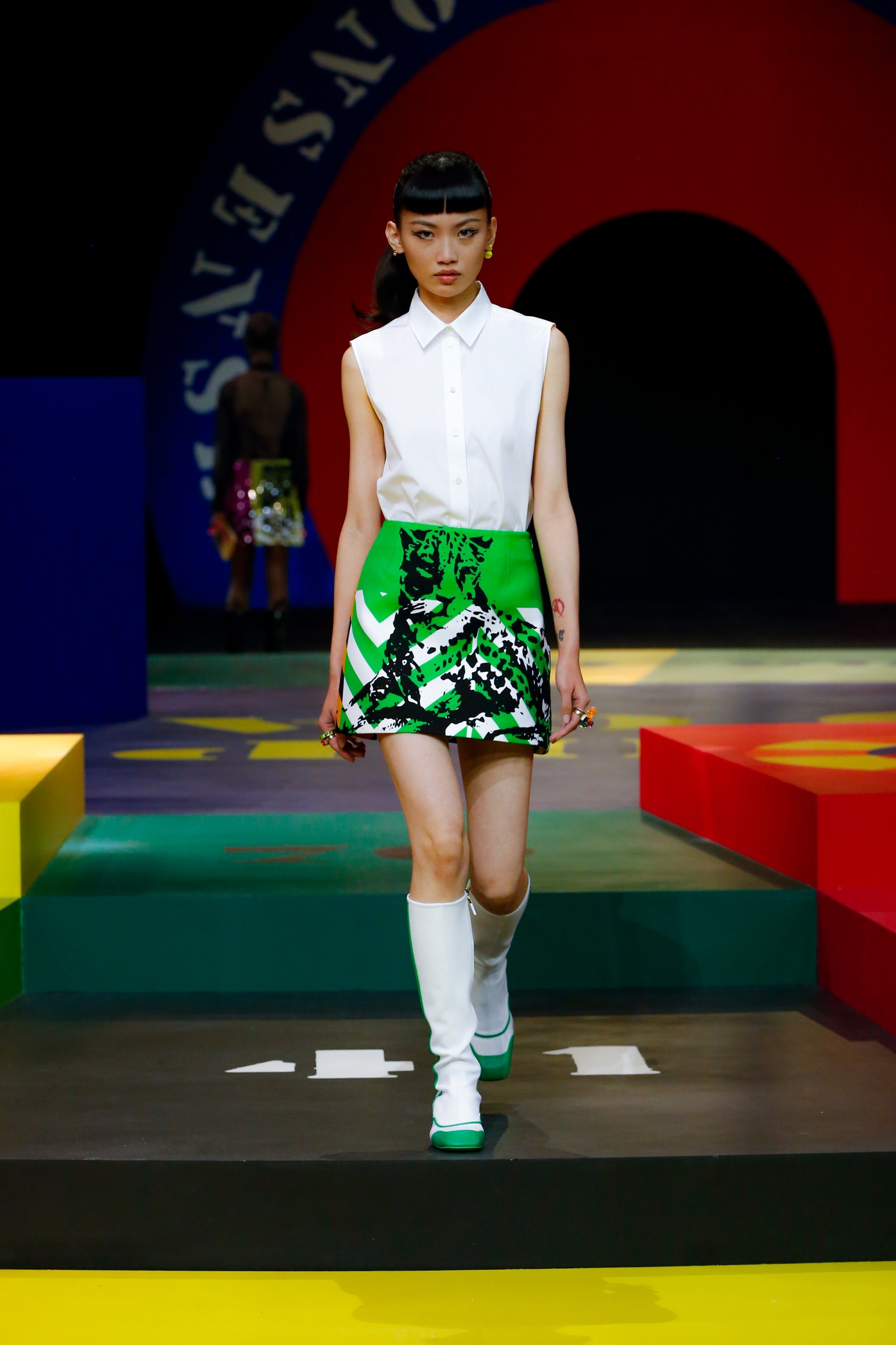 The K-pop princess sat front row as Dior showcased a burst of colourful mini dresses reminiscent of the 1960s and 1970s. There were boxy 60s jackets, sporty vests and dresses, graphic printed miniskirts and tube tops, paired with go-go boots, gladiator sandals and low-heeled Mary Janes.