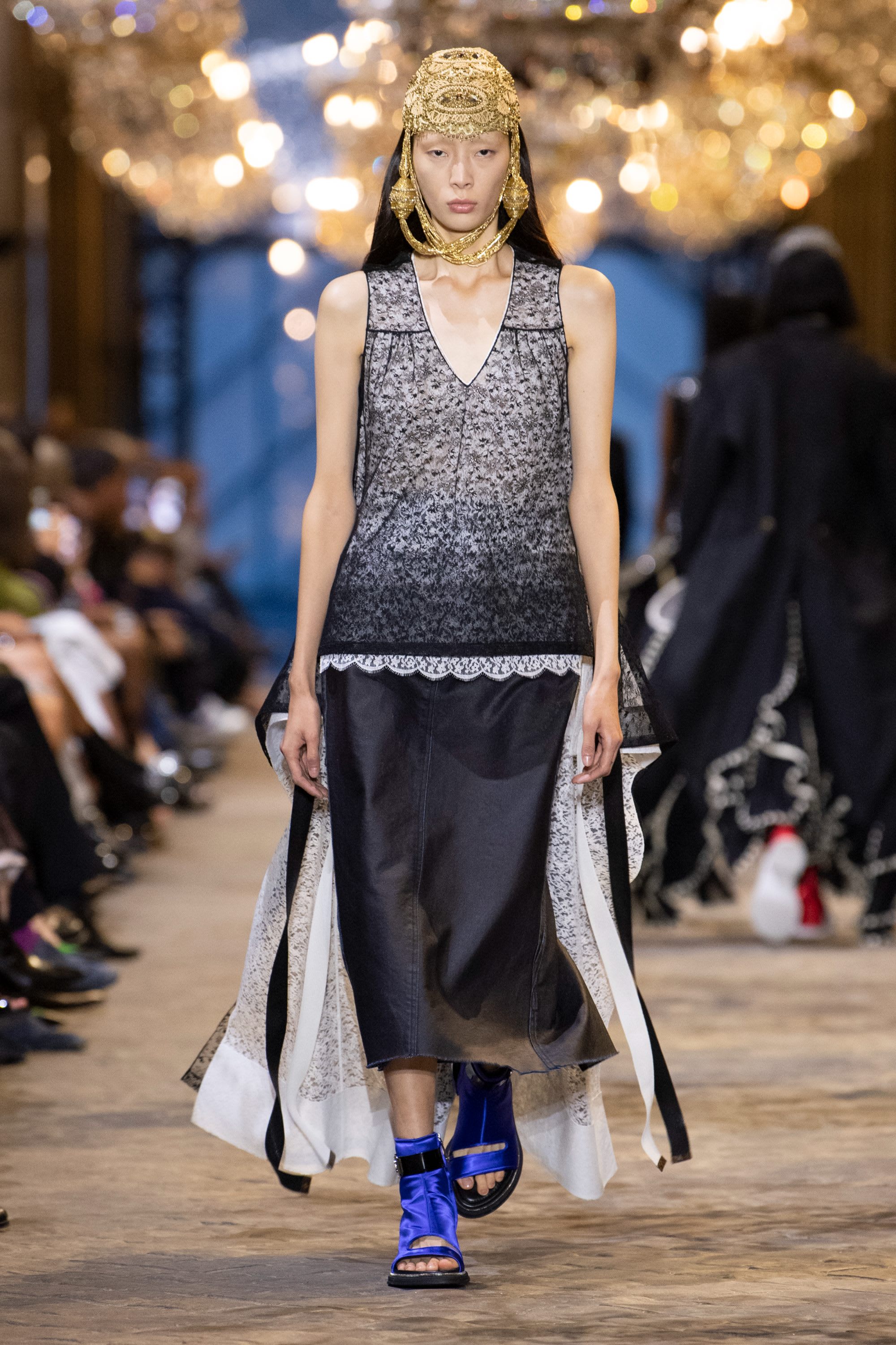 Paris Fashion Week came to a dramatic close with Louis Vuitton’s grand ball of a show that travelled back to the 19th century. Ornate ceiling chandeliers set the scene while models, wearing masquerade masks, walked down the runway in embellished pannier dresses, glossy puffer jackets and skirts decorated with lace and beads.