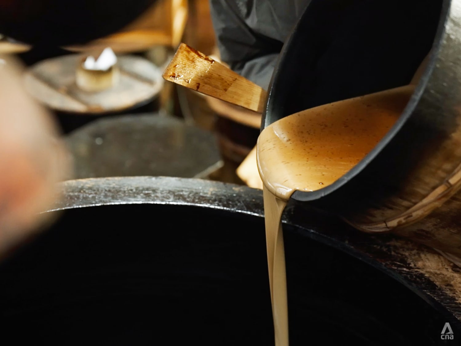 The sap collection and refining process is a laborious one that requires great skill. Tsutsumi refines the urushi by filtering, stirring and heating it ‒ a process that requires a month to complete.