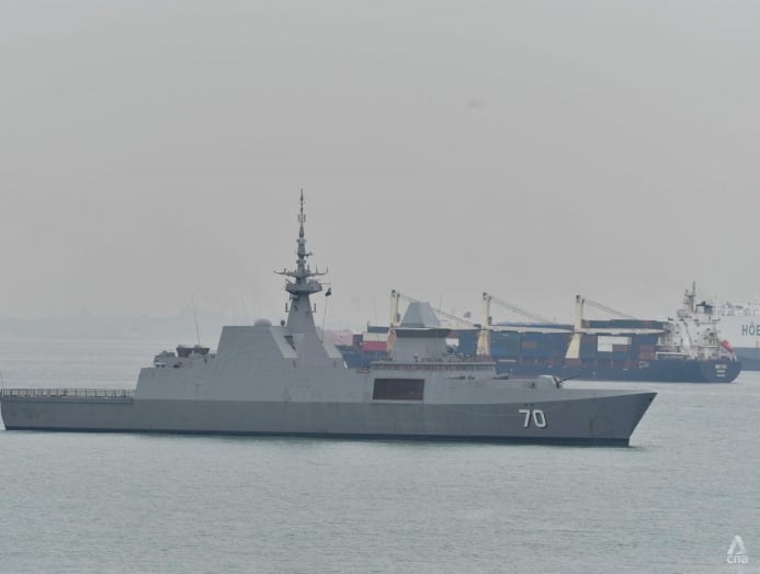 The naval display was more muted, but still featured warships from four FPDA nations in the waters off Marina South.
