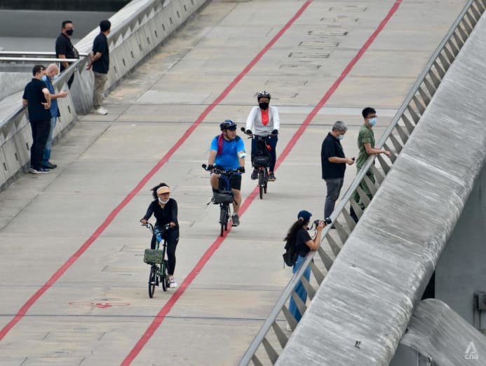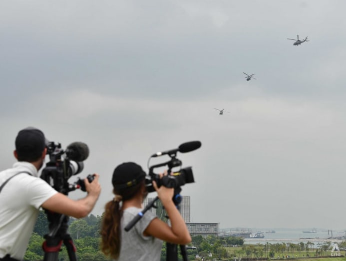 Nearby at Marina East Park, a crowd had gathered by the breakwater to catch a glimpse of the multi-nation military display, which was also livestreamed on the Ministry of Defence’s (MINDEF) social media platforms.