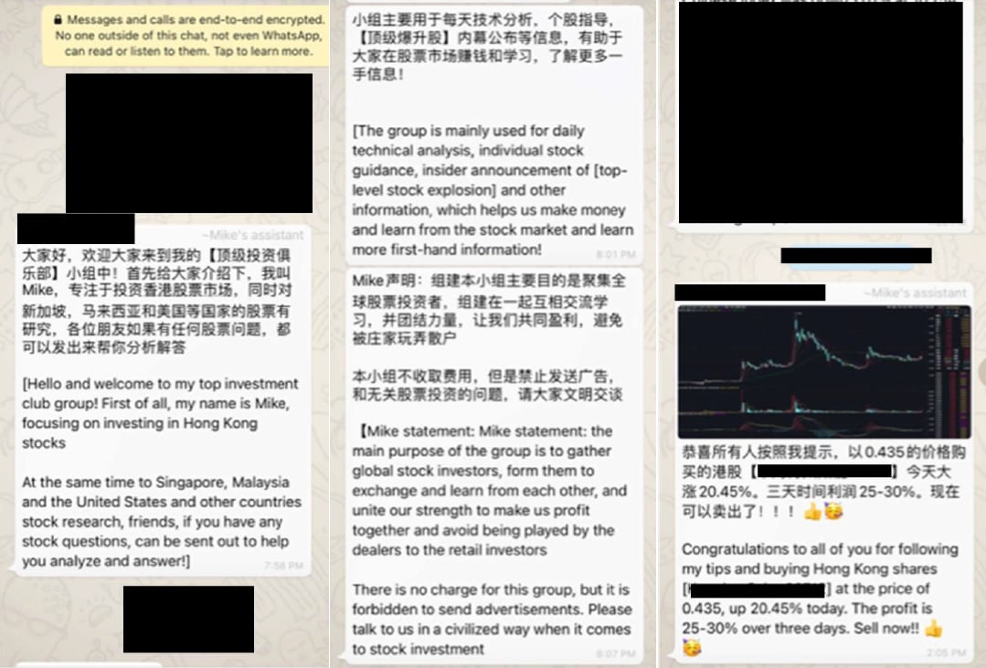The fraudsters would encourage all victims in the chat group to purchase the shares immediately once the company’s name was revealed.