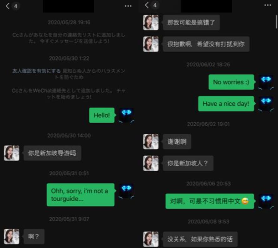 In the first method, a photo of an attractive woman is used as a profile picture on social media or instant messaging accounts to lure victims into one-on-one conversations.