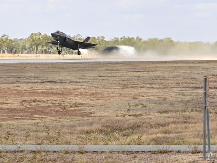 A United States Marine Corps F-35B landing at Tindal Air Base in Australia during Exercise Pitch Black 2022. (Photo: CNA/Jeremy Long)