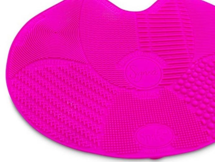This hands-free tool-cleaning device is basically a silicone mat with seven different texture choices that clean eye and makeup brushes when you rub or sweep your brush heads against the mat, after dipping them in warm soapy water. Designed with suction cups on the back side, this mat will securely place on flat surfaces. It also fits most sinks. Available at Sephora.