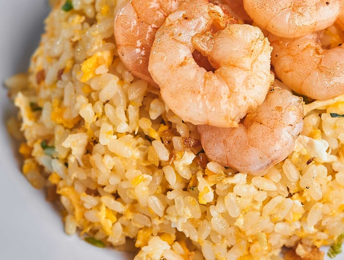 By using sauteed garlic instead of raw cloves, the fried rice is infused with a mild sweetness and an assertive aroma that will please those who want a little more oomph to their carbs. We also like that the small but springy prawns are given a quick deep-fry – to bring out their flavour – before they go into the wok with the tasty rice.