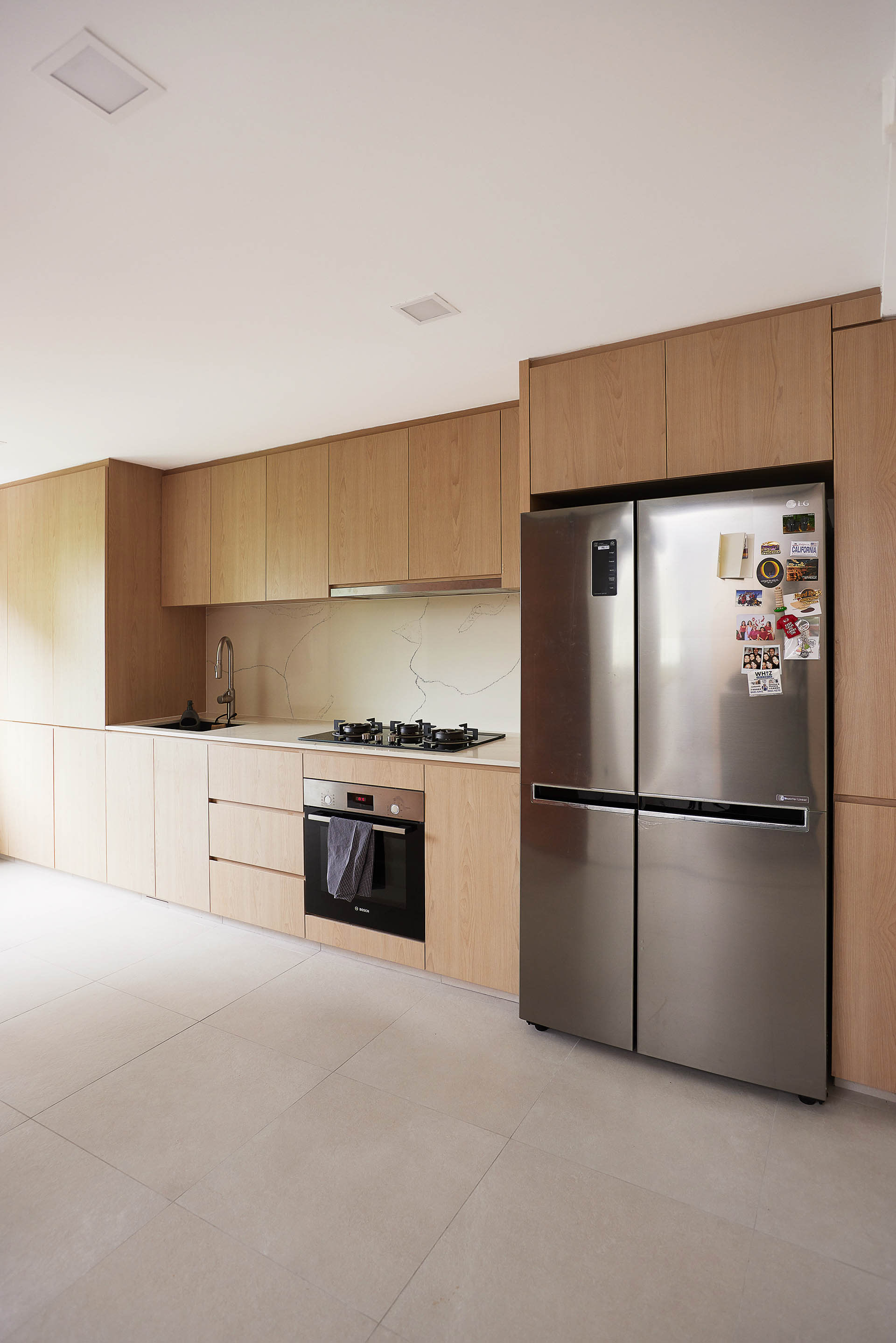 Fei cooks quite a bit, so she kept the kitchen semi-open-concept so that smells won’t emanate to the rest of the house when heavy cooking is involved, but it can still be kept open for the occasional baking sesh with Mum.
