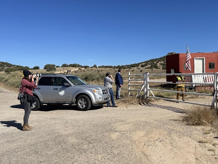 Processing the scene: Investigators arriving at the Santa Fe movie ranch the day after the shooting which left one dead and one injured after Alec Baldwin accidentally misfired a prop gun.