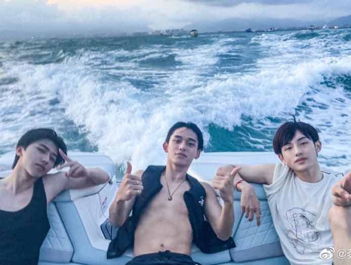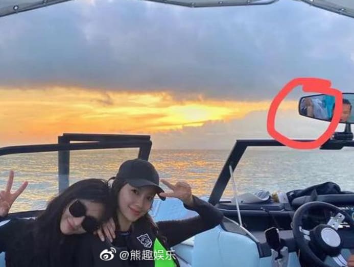 Internet sleuths soon determined that the man in the reflection was 22-year-old Chinese pop idol Cai Xukun, who had also shared a photo of himself on what was said to be the same yacht, in the same outfit.